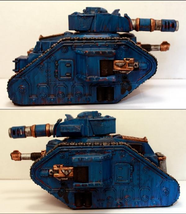 Lastly, some Badab Black looking like oil running out of the holes in the sides (where I removed METAL spikey bits that had been sticking out of the tank) and some metallic bling... because all blue is boring. LOL