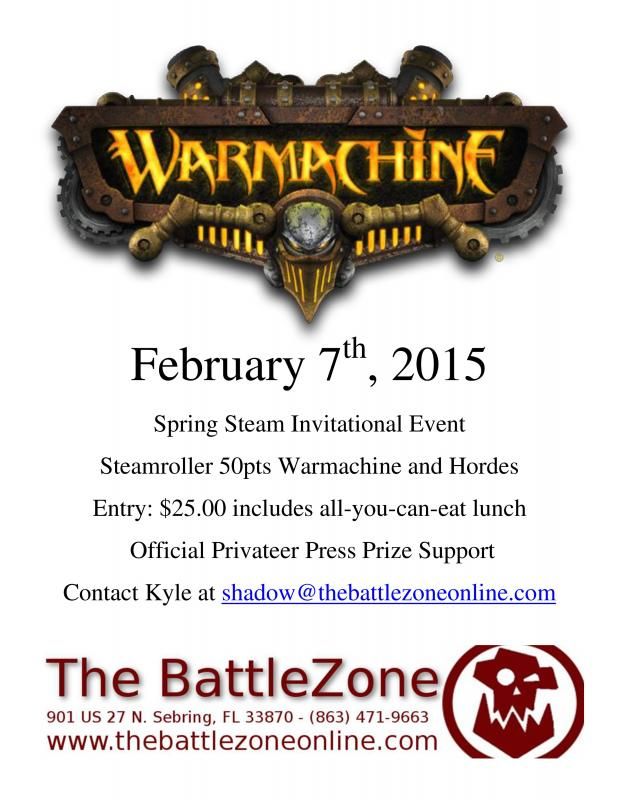 I am happy to announce that The BattleZone will be hosting the Spring Steam Invitational. This is a high-end steamroller tournament for all Florida gamers.