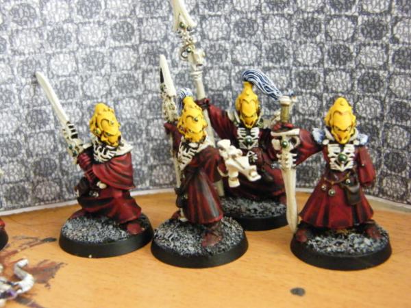 Howling Banshees - revert back to the red and yellow as red is a good solid base for them. The 'bone' of their aspect comes in with the masks and runes to mark them out.