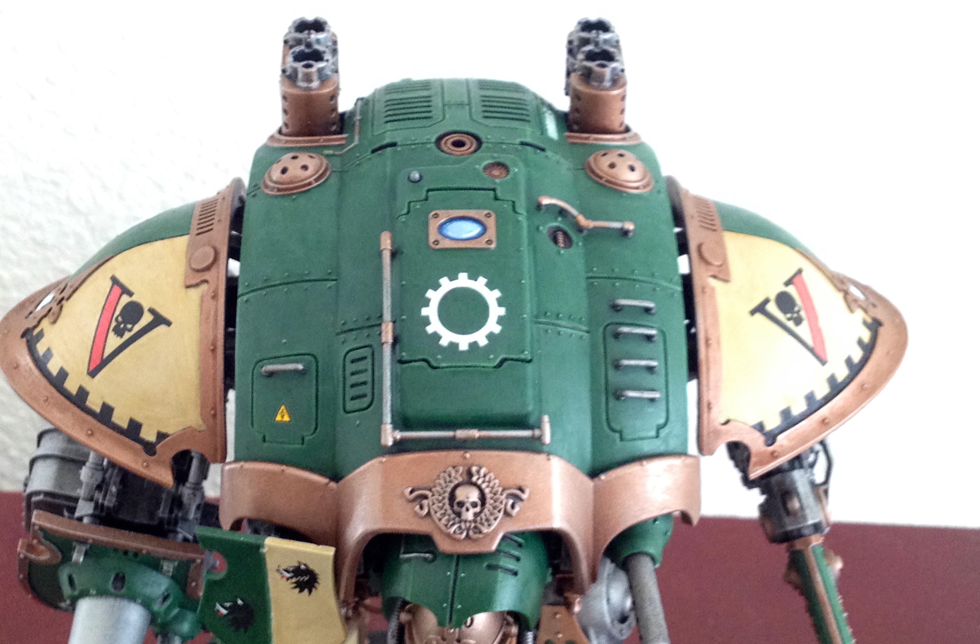 My only input would be to maybe paint some different metallics on certain pieces like the face shield edging/filigree, and on the freeblade icon. Breaks up the copper color a bit and brings a little more attention to those pieces.