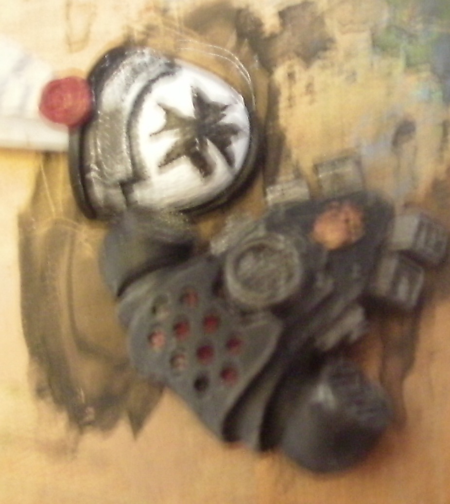 I have tried fixing it to the bolt pistol but the problem is that it is an old empire shield and its quite curved so there is a big gap in the middle of the shield where I want to fix it. Guess I just need to think about it a bit more and maybe have a rummage around the flat to look for a suitably sized widget to stick in the gap to secure it. In fact I'm pretty sure now that this is the way to go then as it shouldn't be visible from any angle except maybe the top-down view but I'll put something there.