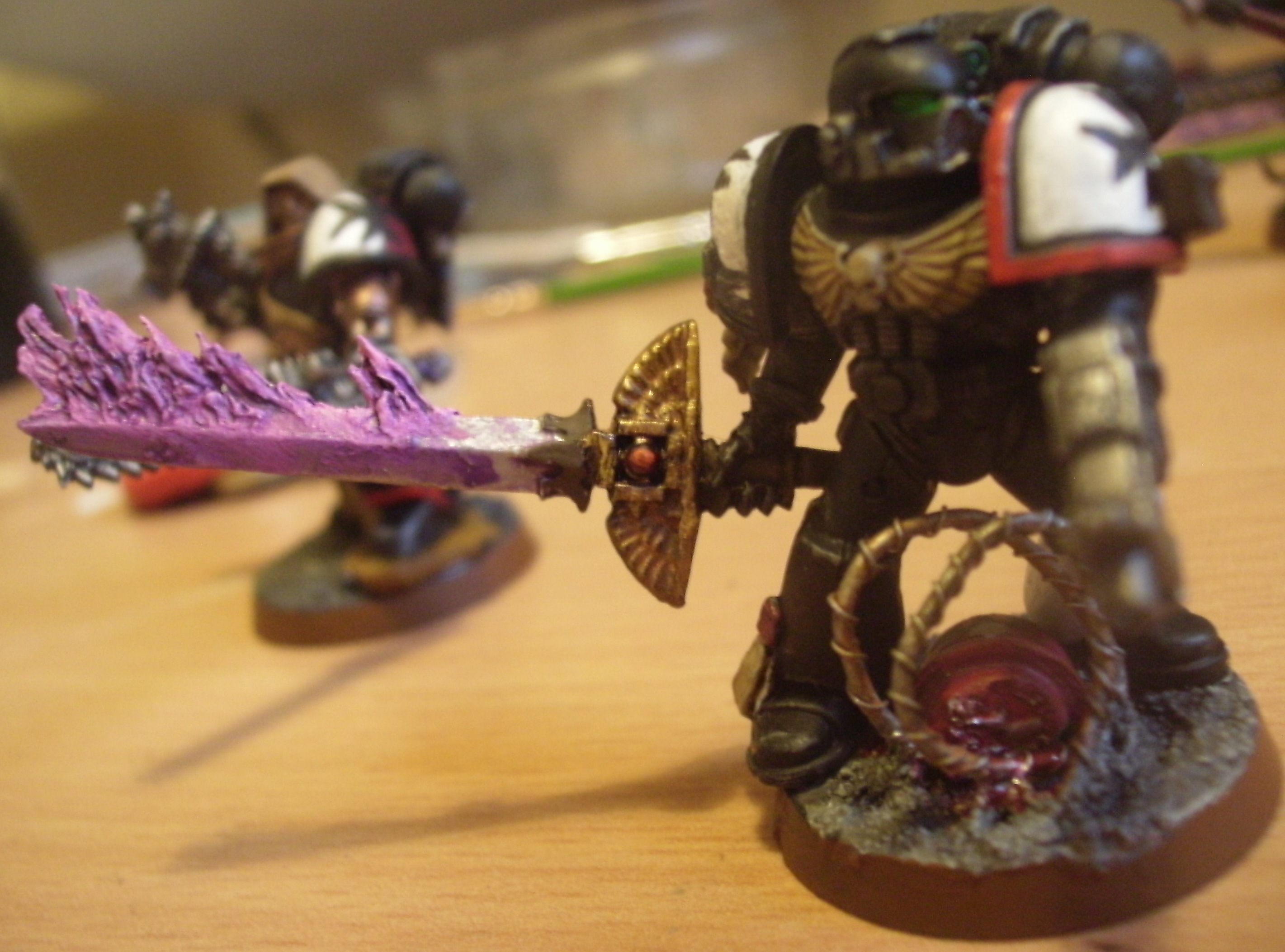I tried out my new method for trying out power fists and power effects which I think turned out quite well. I haven't tried to do any OSL as I feel like his darkness is quite good and is a nice offest to the power fist. He has been good fun to paint so far and I liked all the wibbly wobbly purity seal stuff I had to do on him.