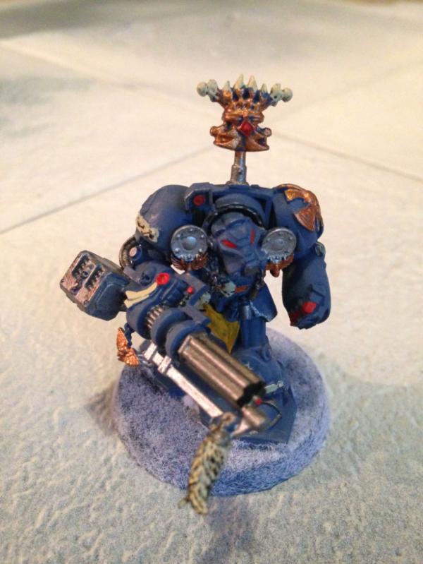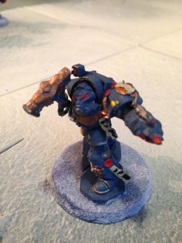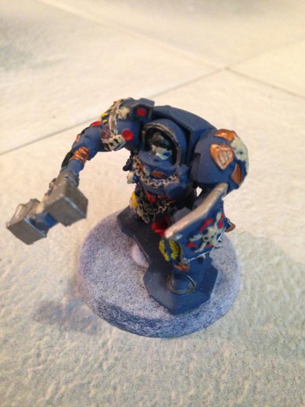 I collect Space Wolves as my primary Marine army so did up the Terminators in that style. I cannabilised some parts from some old
