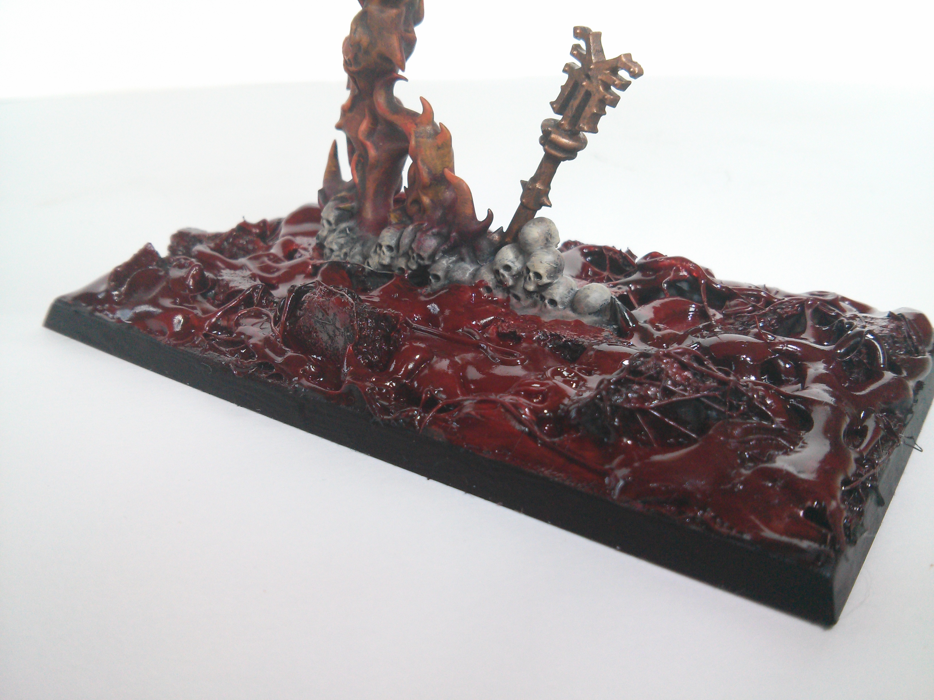 I achieved the mass blood effect by putting a lot of hot glue on the base, painting it Khorne red and giving a huge dose of blood for the blood god on the base