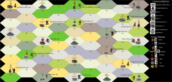 Each tile gives a unique ability to the force defending it, except for the hive cities which count as all of the other types. My boys in the Marauder Legion 2 started off at tile G4 on a shield generator (meh).