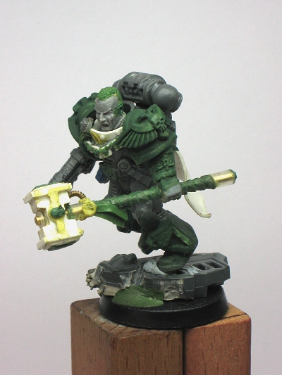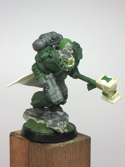 If i were to make a criticism about it though, it can be somewhat on the bulky side. The details on many marine shoulder pads in GW kits don't have nearly as much girth for example. And the emblem and tassel next to his chin seem somewhat high, the chords being on the thick side. Even still however, much of your sculpting on that mini is appropriately sized, detailed with clear definition and really lends to its character.