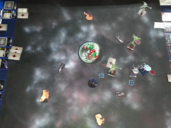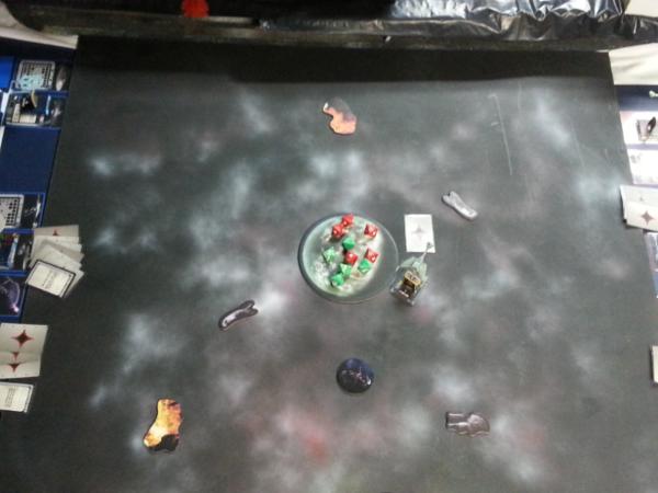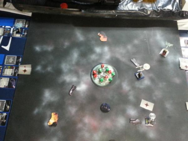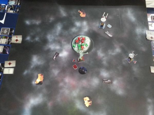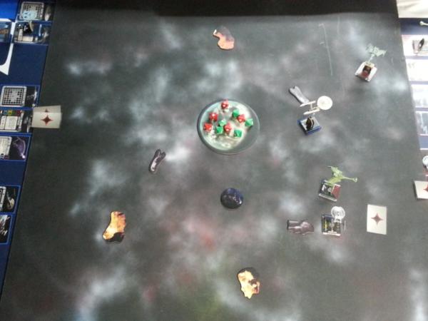 Enterprise destroys 1 shield and inflicts 1 damage to B’Moth’s hull. B’Moth lands 3 hits and a crit destroying Enterprise.