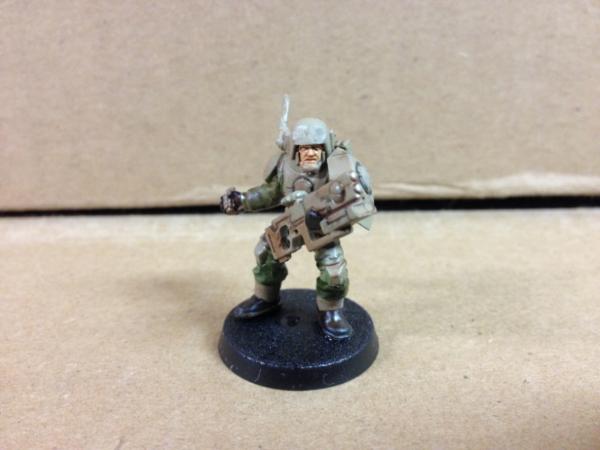 Hello all, recently surfing through 40k lore I stumbled across the Geu'vesa, human soldiers fighting for Tau. So after a little more research and looking over pictures of some interpretations, I decided to have a go at making my own!