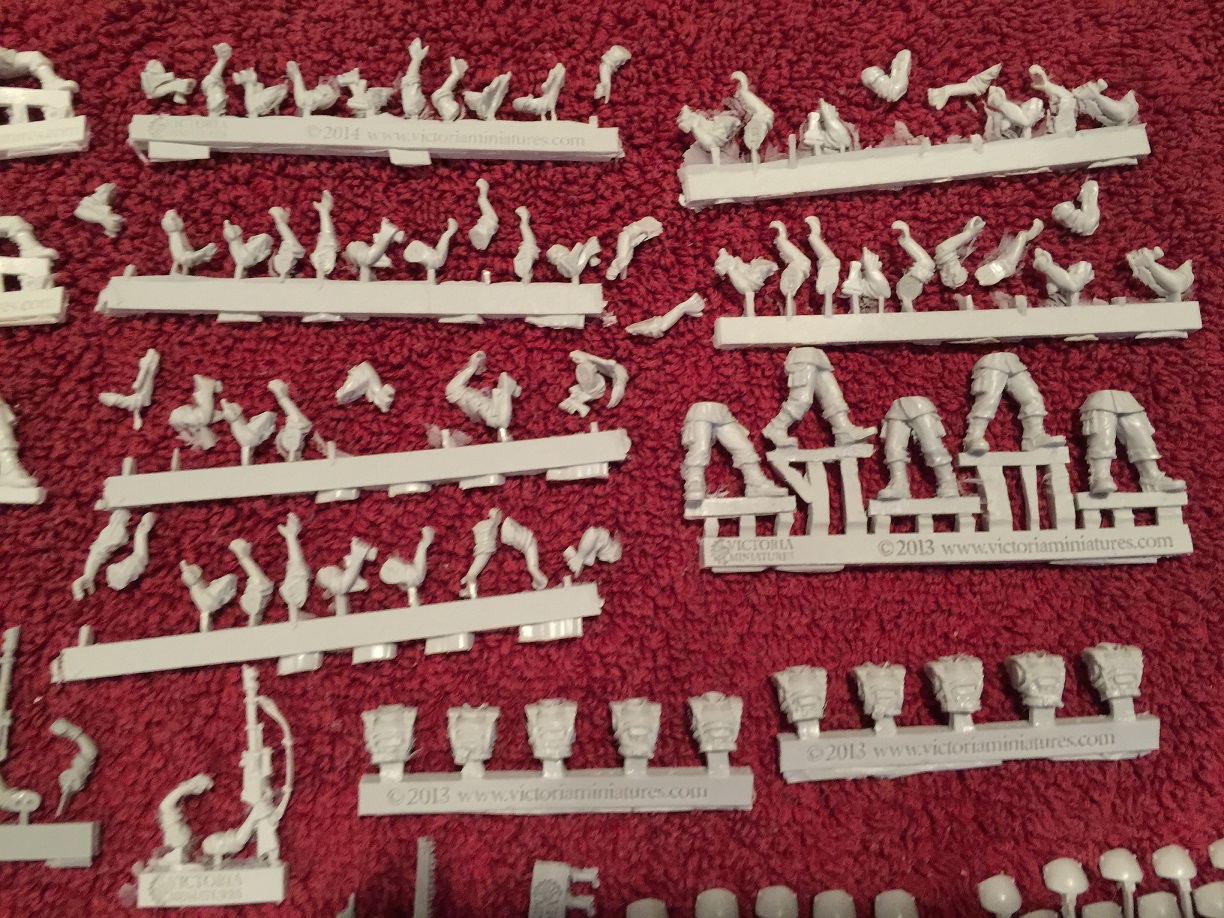 Got a 20 male Arcadian and 10 female Arcadian torso's as well as 23 female legs and lots of female arms from Victoria Minatures and one each of the two sets from Eureka Minatures. 10 total heads from Statuesque Got a lot of other random bits from Victoria, including 2 sets of the wheel conversions for the Turox. Lots of bits from maxmini and still waiting on the bits from Mad Robot, but none of those are needed for the female conversions. Can not wait to start building this army up.