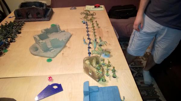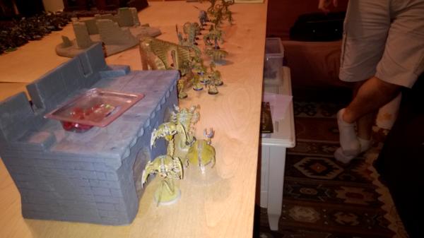 He takes all of 5 minute to set up his army as his jetbikes and scarabs are all staying in reserve, model count wise, nearly half his army.