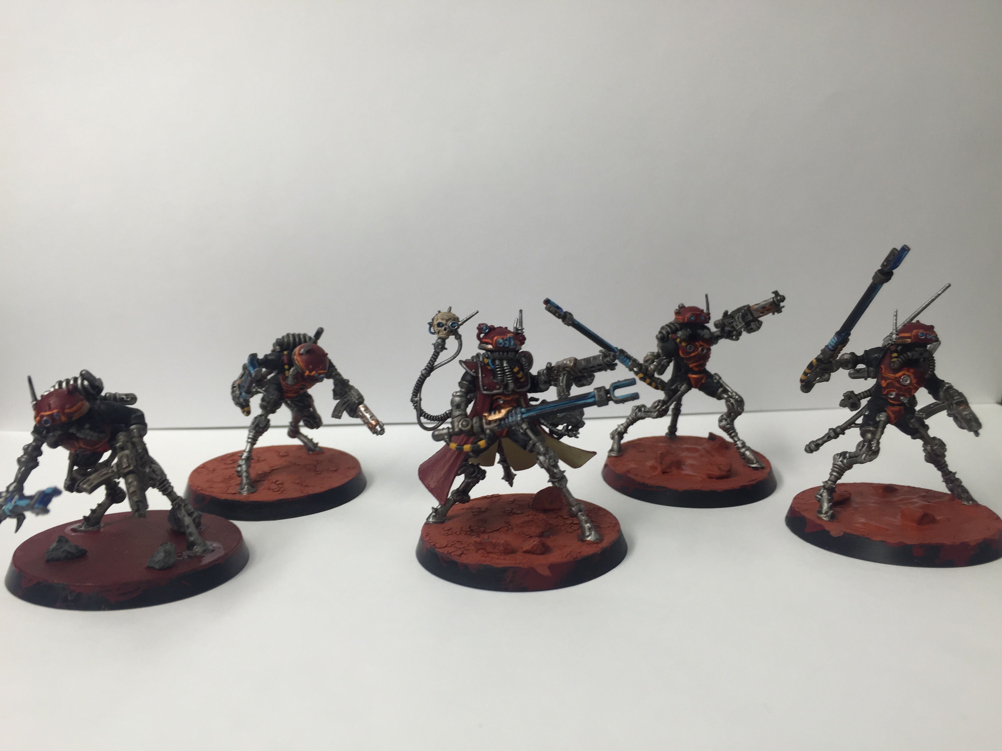 I don't have a good camera. So these pictures didn't turn out very good but here's my first set of skitarii. I've only been painting a short while but I think they turned out good. The only thing I didn't like was the blue glow of the taser goad.