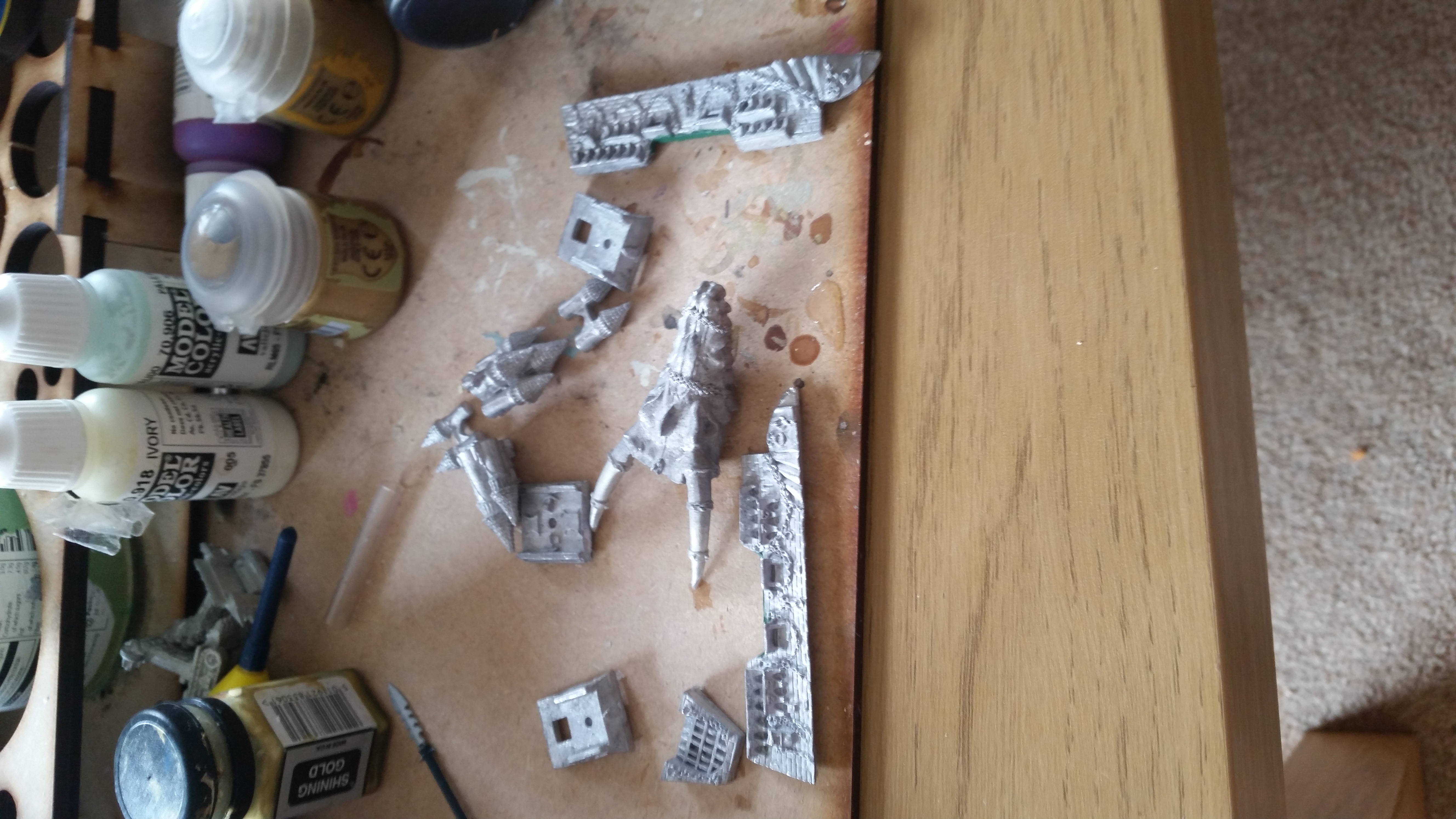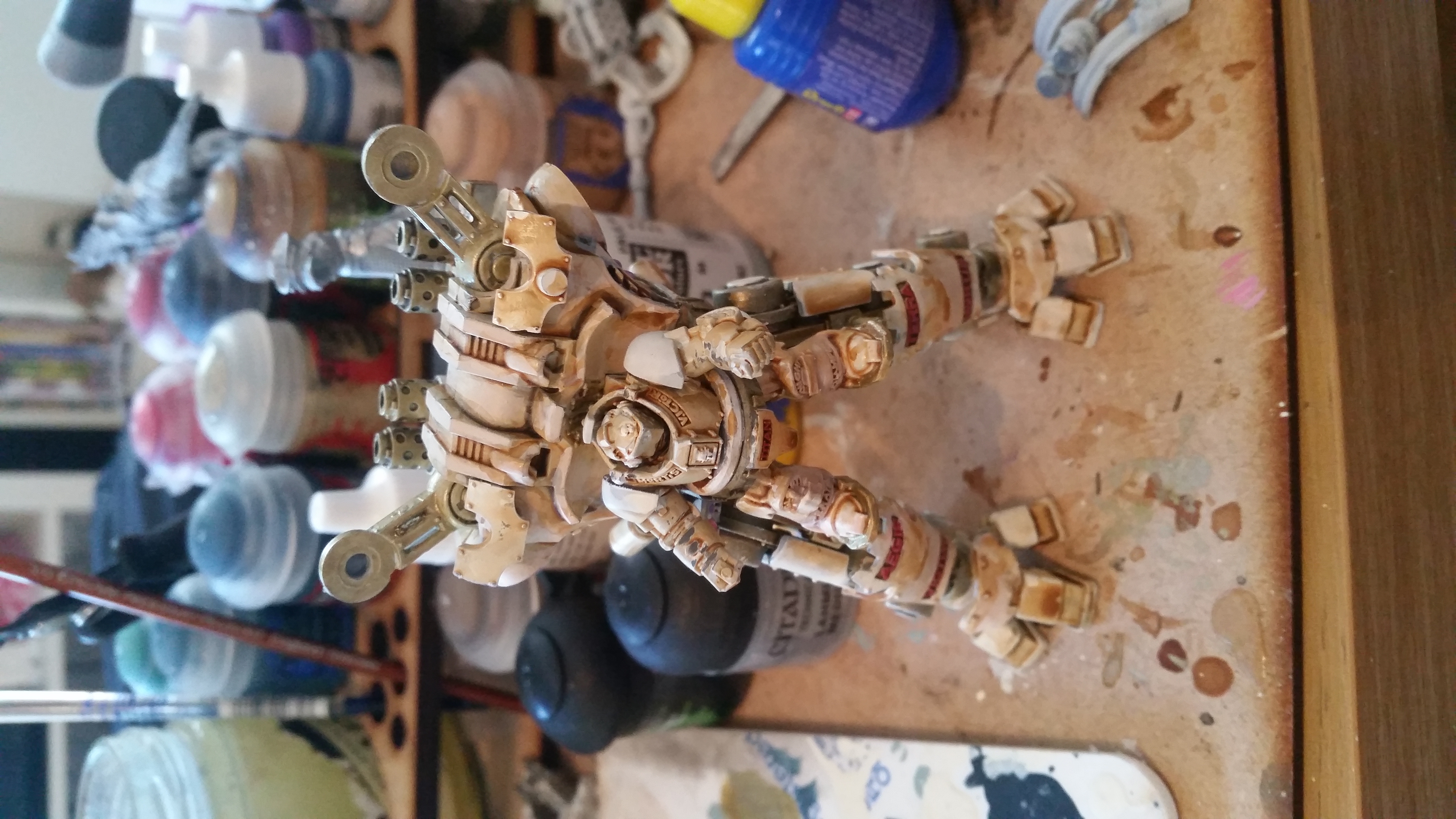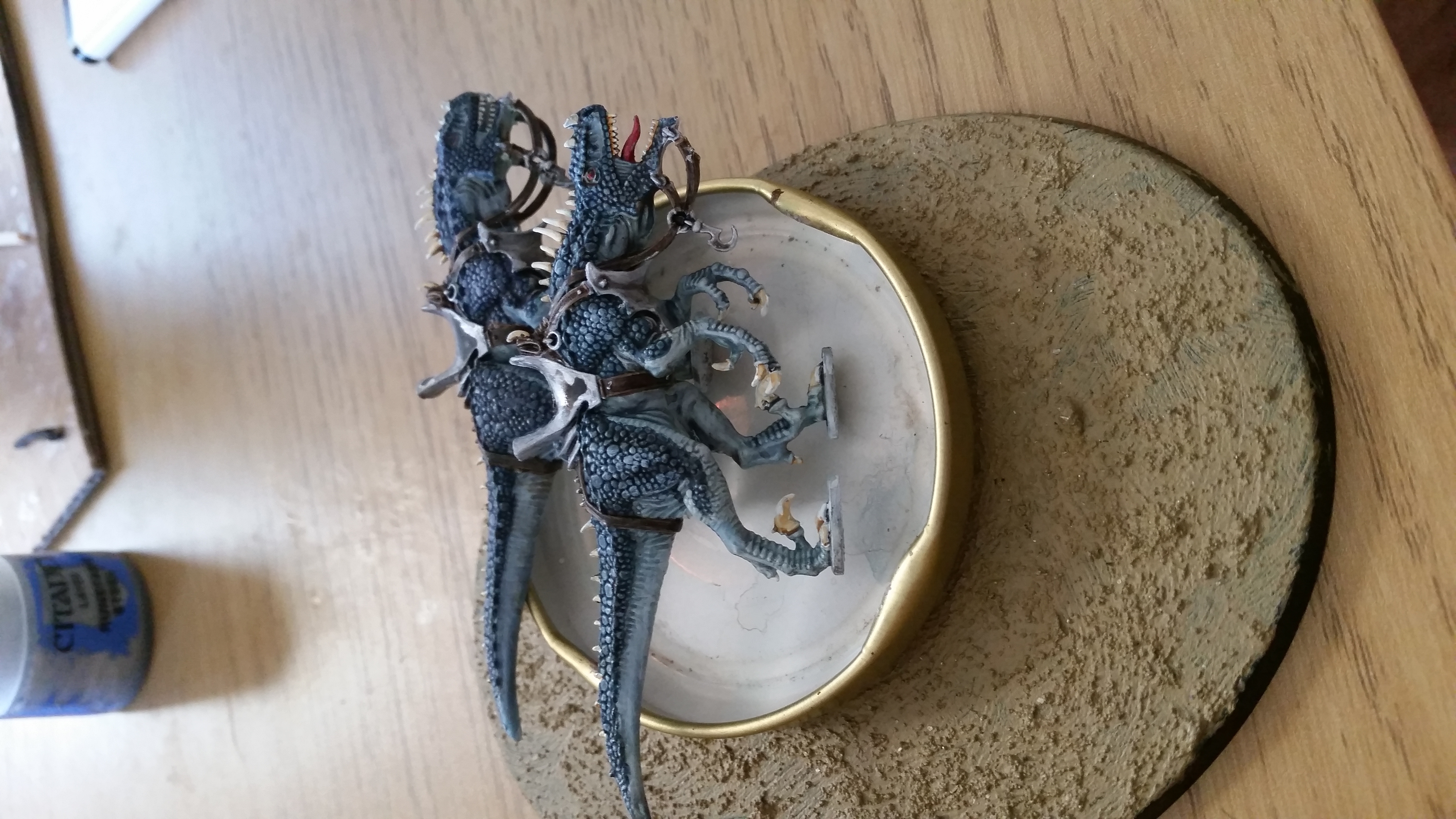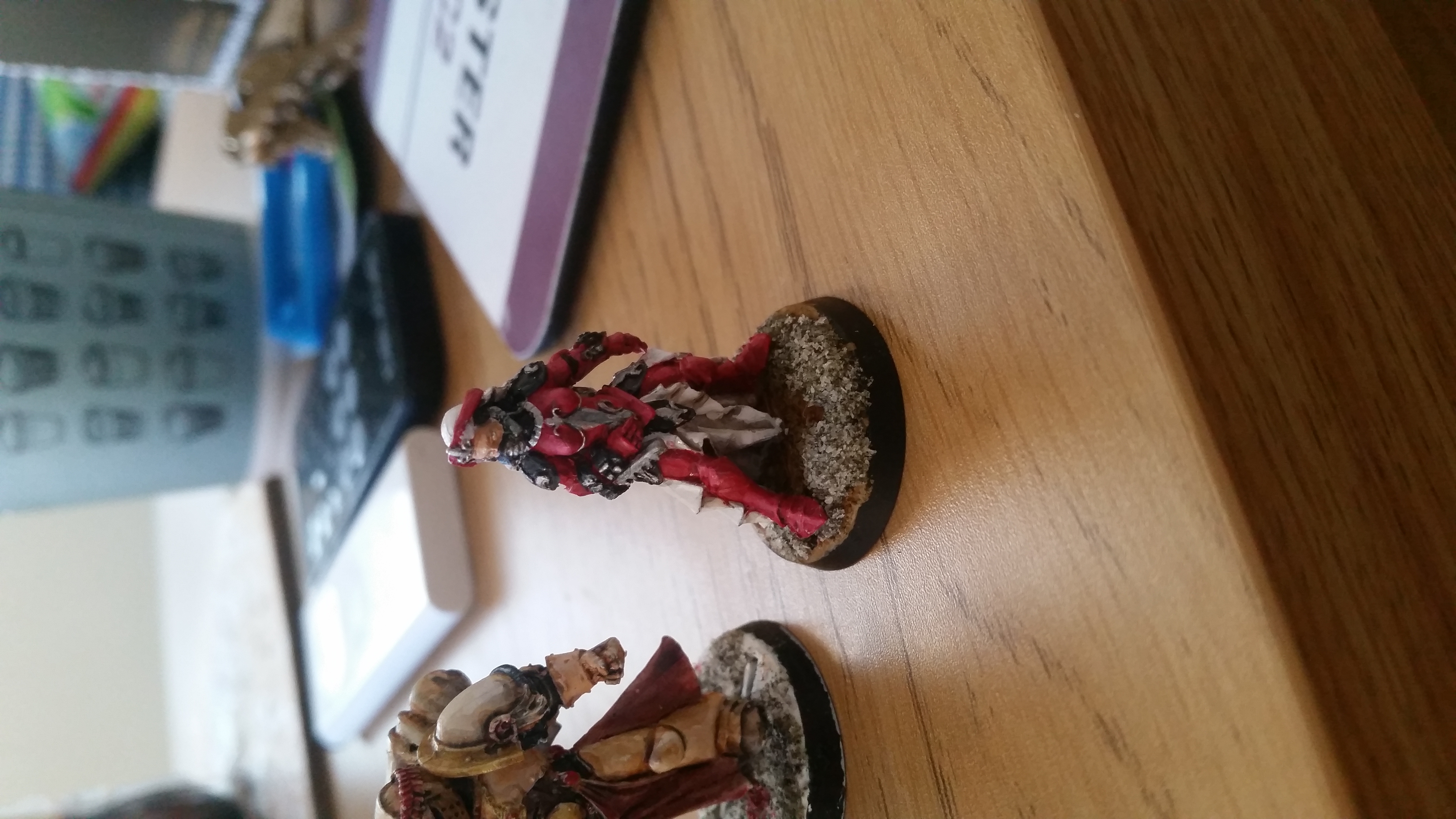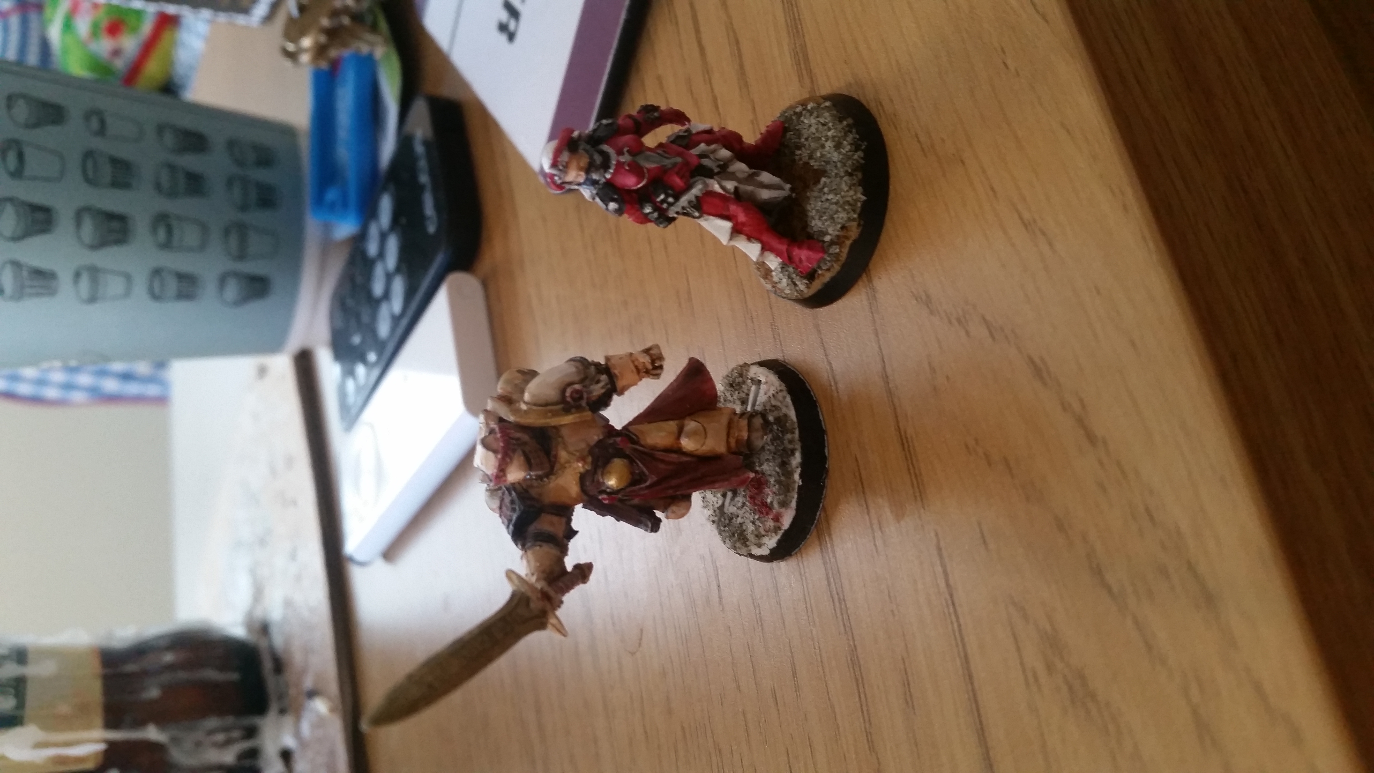 WELL, I browse too much and contribute too little, so here is the beginnings of a meander through my painting exploits. I used to paint when I was about 10 and my older brother was far better than I. seventeen years later, he is still better than I, but I am better than I as well. I don't play any GW games, but I like the miniatures, so there will be very little cohesion here for the most part. I do have a lot of things in boxes to paint, and sporadically change my mind as to what is next. First on the table are a couple of dark elf Cold Ones waiting for riders and friends, A Dreadknight waiting for arms, and the first pair of miniatures I painted on my return to the hobby; an emperor's champion and a SoB hospitaler (one of my favourite models ever).