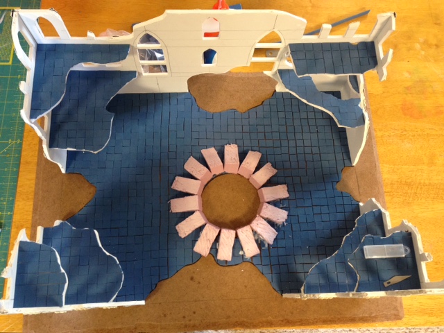 Whew, been forever since I updated. Just been a bit crazy. At least I managed to get some work done in the meantime. Tile flooring is done and some of the debris has been added including the central crater.