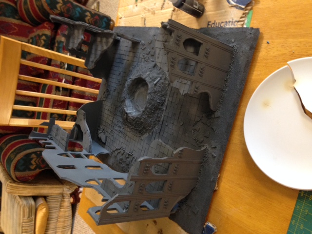 Just a quick update today. Managed to finish up some details and get the base coat/primer on. Lots more to do now. I am contemplating adding rivets to all the external uprights just to add some more detail. I do agree that the holes in the wall should be more jagged. I am not sure why I didn't notice that before. I am trying to decide the best way to accomplish that at this stage. Any suggestions?