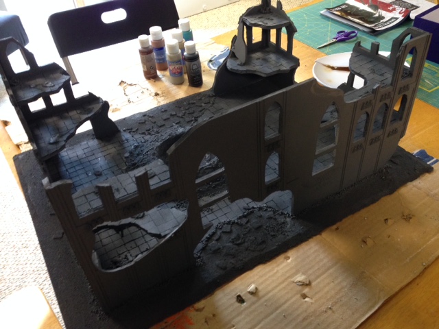 My daughter and I started on a small terrain making project (a couple small foam core ruins) that blossomed into something a bit bigger than we intended. I am going to try and chronicle the project here.