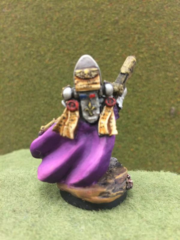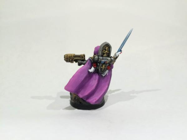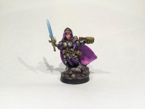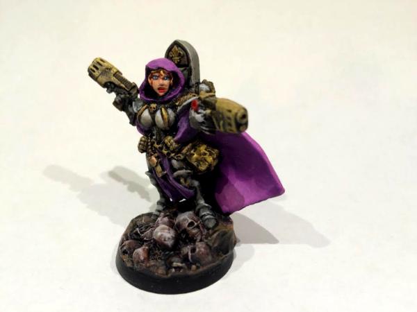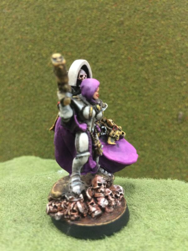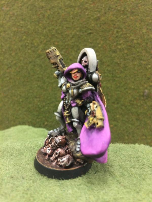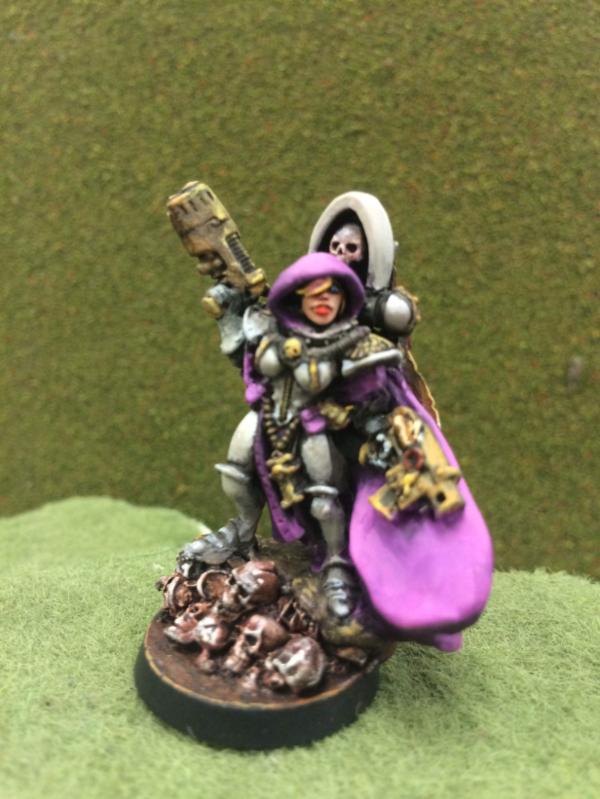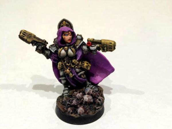 I made a new Cannoness for my SOB army, this one with the Mantle of Ophilia and two plasma pistols. (I am