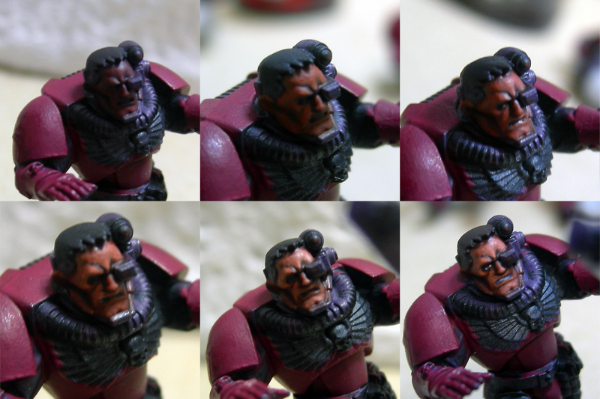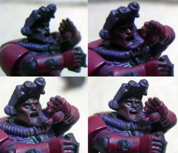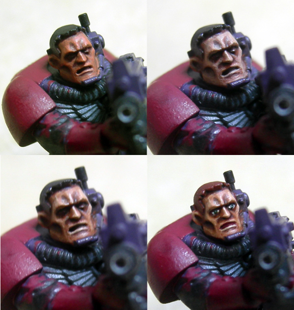 - Another thin layer of a mix of Bestial Brown and Ratskin Flesh on the higher areas of the face.