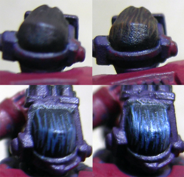 - For the blue-black hair, first add thin lines of Shadow Grey, then more thin lines of Shadow Grey/White mix.