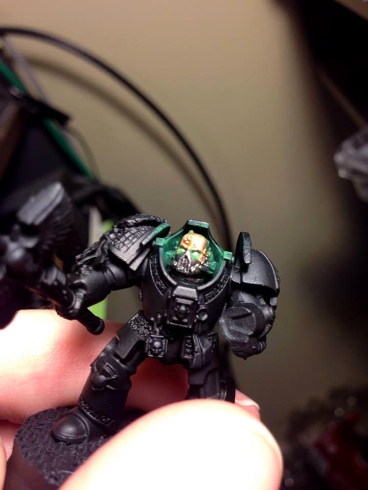 I'm currently working on a side project of some Deathwatch squads along side my Vostroyan Imperial Guard. I've already completed a captain, along with a good handful of tactical and veteran marines for this Deathwatch force. I've currently started on the Deathwatch Librarian and wanted some feedback on the Object Source Lighting, along with the glowing eye effect I've attempted. I watched several tutorials on the techniques and am fairly pleased with the results, but I may be missing something important that a more seasoned painter with more experience with these techniques might be able to impart.