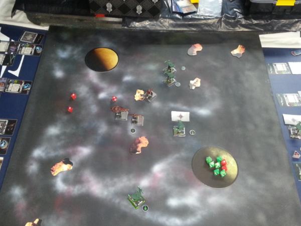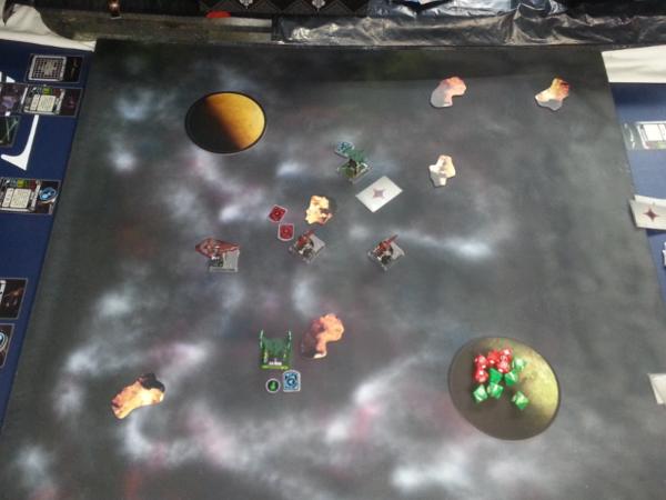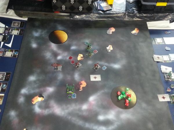 The Praetus destroys 2 shields on the D’Kyr. Ni’Var deals 1 damage to the