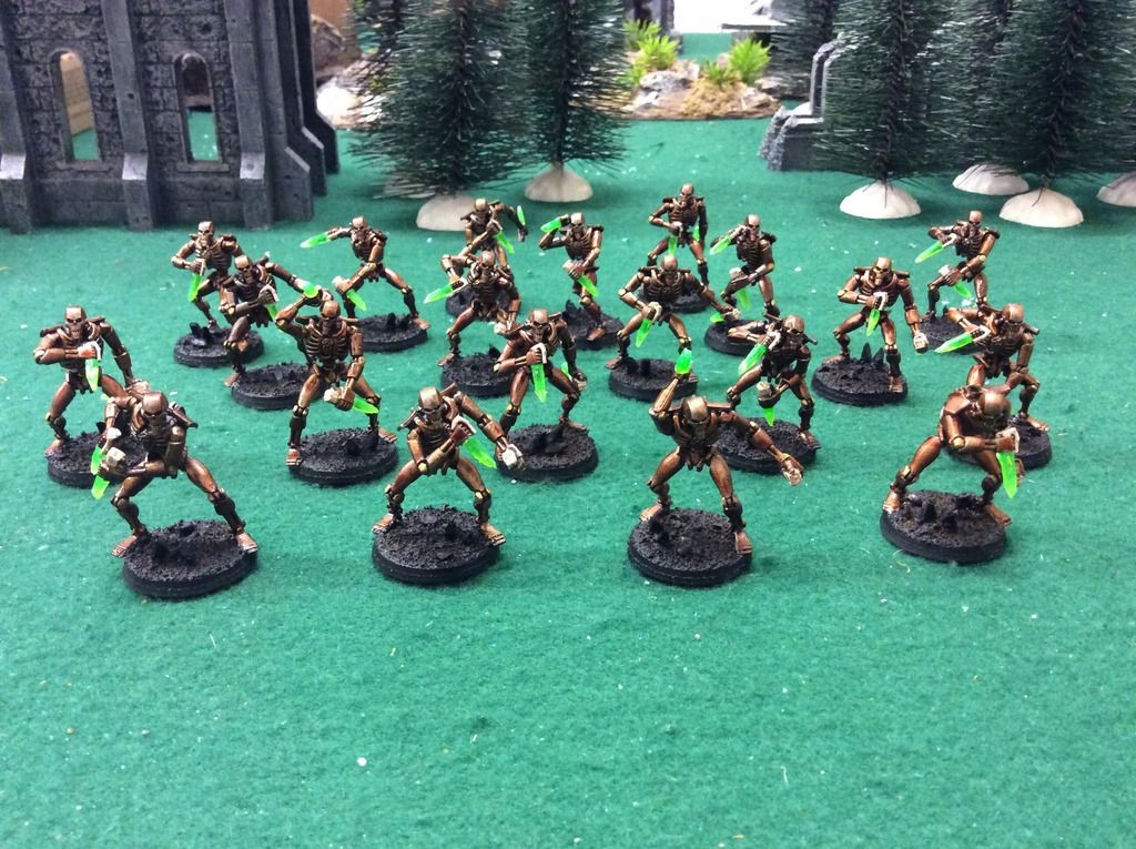 Someone asked how I would do Flayed One Conversions a longtime ago, and this is what I came up with. Everything is right out of the Necron Warriors box, and they've been a great addition to my army. I'm even considering doing a 2nd unit since my original 20 metal ones seem to remain lost in the Storage Stasis crypt...