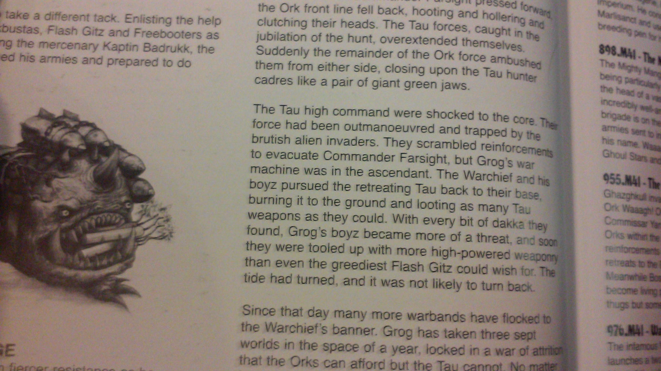 ... how many Sept-Worlds does the Tau Empire contain? They seem to have lost at least 3 to one Waaaghboss, and he shows no signs of stopping. The Imperium might not even need to worry about the Tau if things continue as they have been.