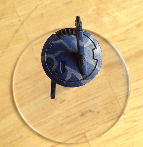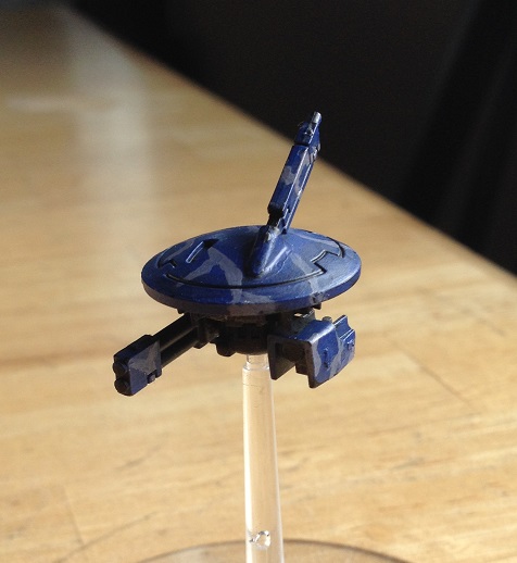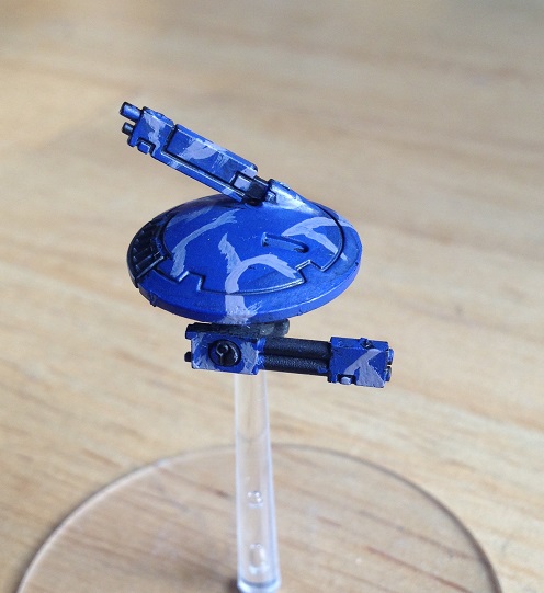 Pardon my horrible lack of prior knowledge and a decent camera; but for my Tau army, I decided to go with a sort of ocean camouflage scheme. I applied a blue basecoat, used nuln oil to fill in the crevices of this drone then painted on my pattern (for lack of a full paint set the drone is yet to be finished).
