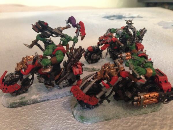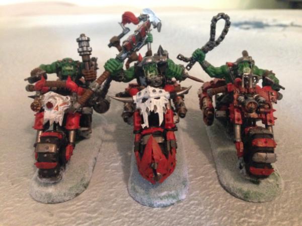 Today we have some truely ancient Ork Boarboys that I painted up a few months back. I proxy them as Znardsark and biker nobz mostly.