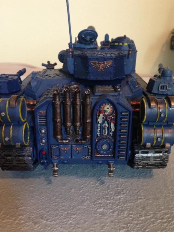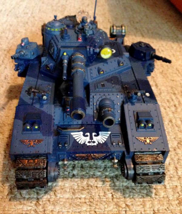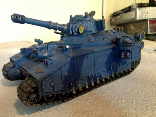 The Baneblade was purchased as my goal was to have at least one superheavy for each army. I painted it up to fit with my Mordian Iron Guard IG army.