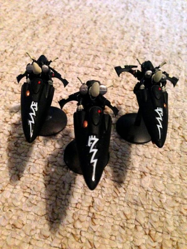 3/6 Eldar Jetbikes. These are old 3rd ed ones iirc with a weird converted Autarch I made up for a tournament.