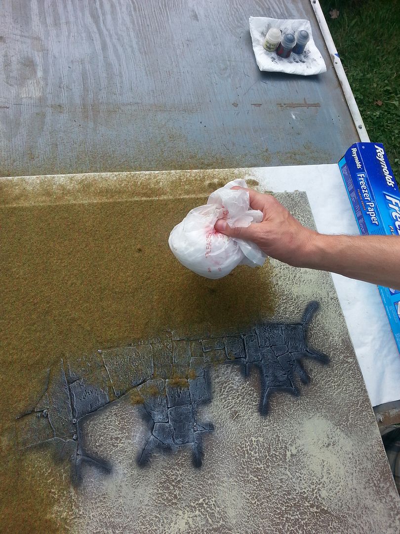 After applying the grass, I balled up a bunch of plastic bags and used them to press the grass down, making sure I had a good connection with the glue.