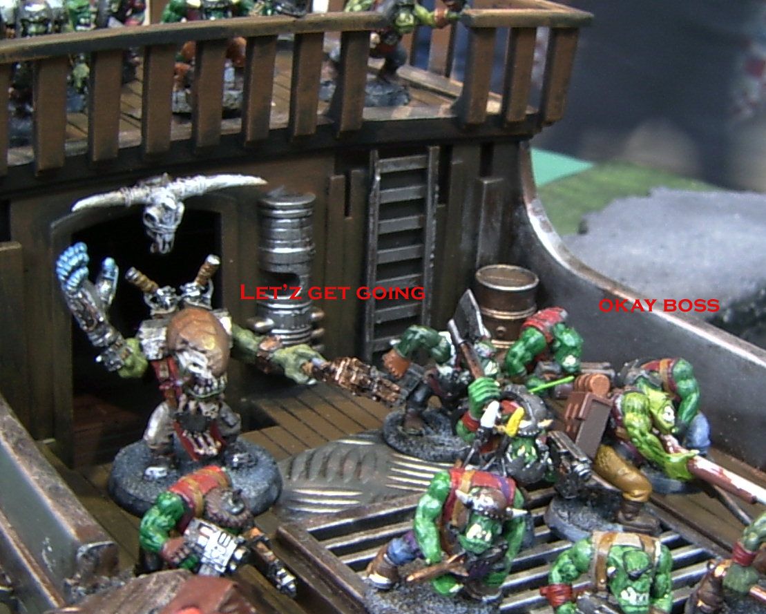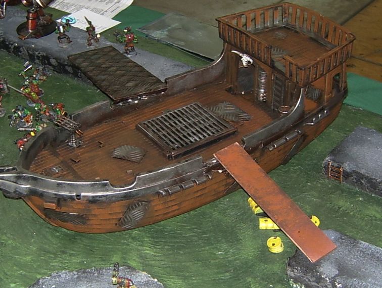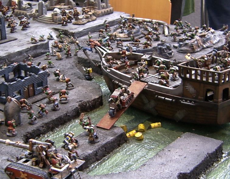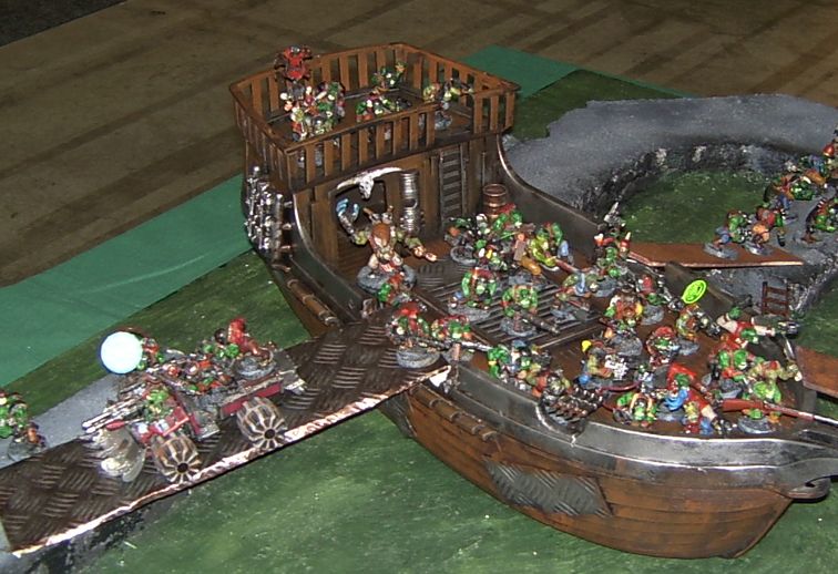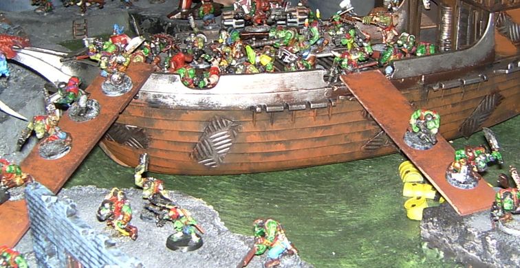 some of you may remember my cityfight/harbor table. well there was alwasy this problem with to much unusable space. well, as long as Orks are somehow involved, problem solved. altough I'm still planning on some more neutral plattforms for the water  the captain's cabin  and the ramps for the bigger units  and the small ramps