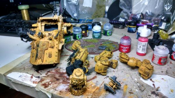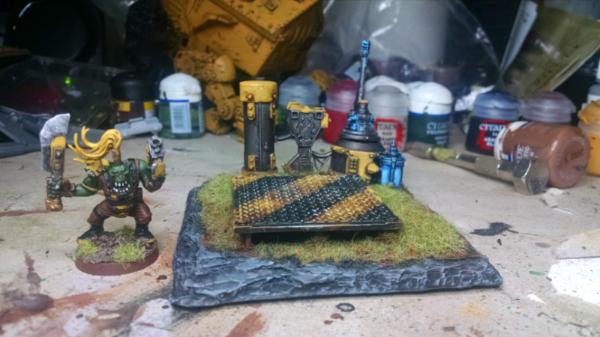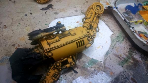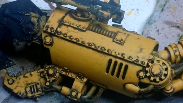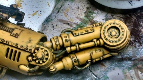 Once eveything has a 'base mid tone' I'll build up the next layer which will be 50/50 Averland Sun and Vajello Flat Yellow.