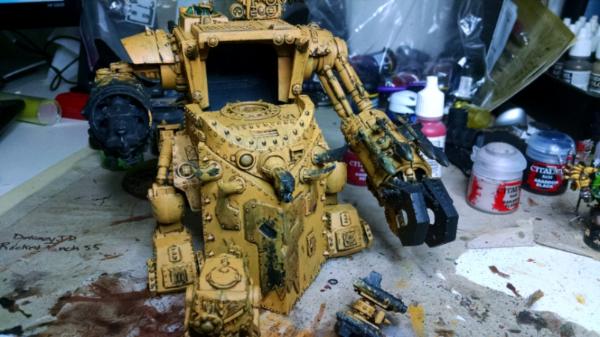 I try to achieve a 'worn' look by not be too fussed about even coverage, leaving scrapes darker, leaving extra dark areas around the rivets and such.