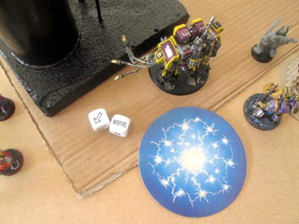 MarsNZ then rolled a 6 for battlefield interference, requiring him to roll a 6 to successfully use his comlinks to bring down further bombardments. Clearly my daemons were causing far too much disruption for his communications to work normally!