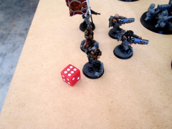 MarsNZ was tempted to charge my Lord with his Commissar, but eventually made the tactically sound decision to shoot copious lasguns at him instead. This killed the Champion, but wasn’t enough to get through the Terminator armour. Instead, a lucky 6 from the remaining LAscannon team at the other end of the field managed to hit, wound and kill the Lord in one fell swoop.