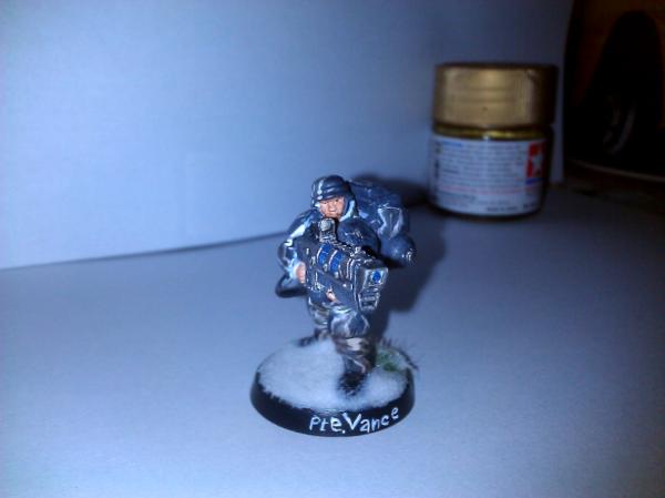 yesterday we had little Killteam game, playing Skirmish mission. I stood against Chaos Marines. His army was more powerful as Guardsmen are squishy and easy to kill (even with Carapace armor), even the model count was very close to each other. One little man did something I never imagine to happen.