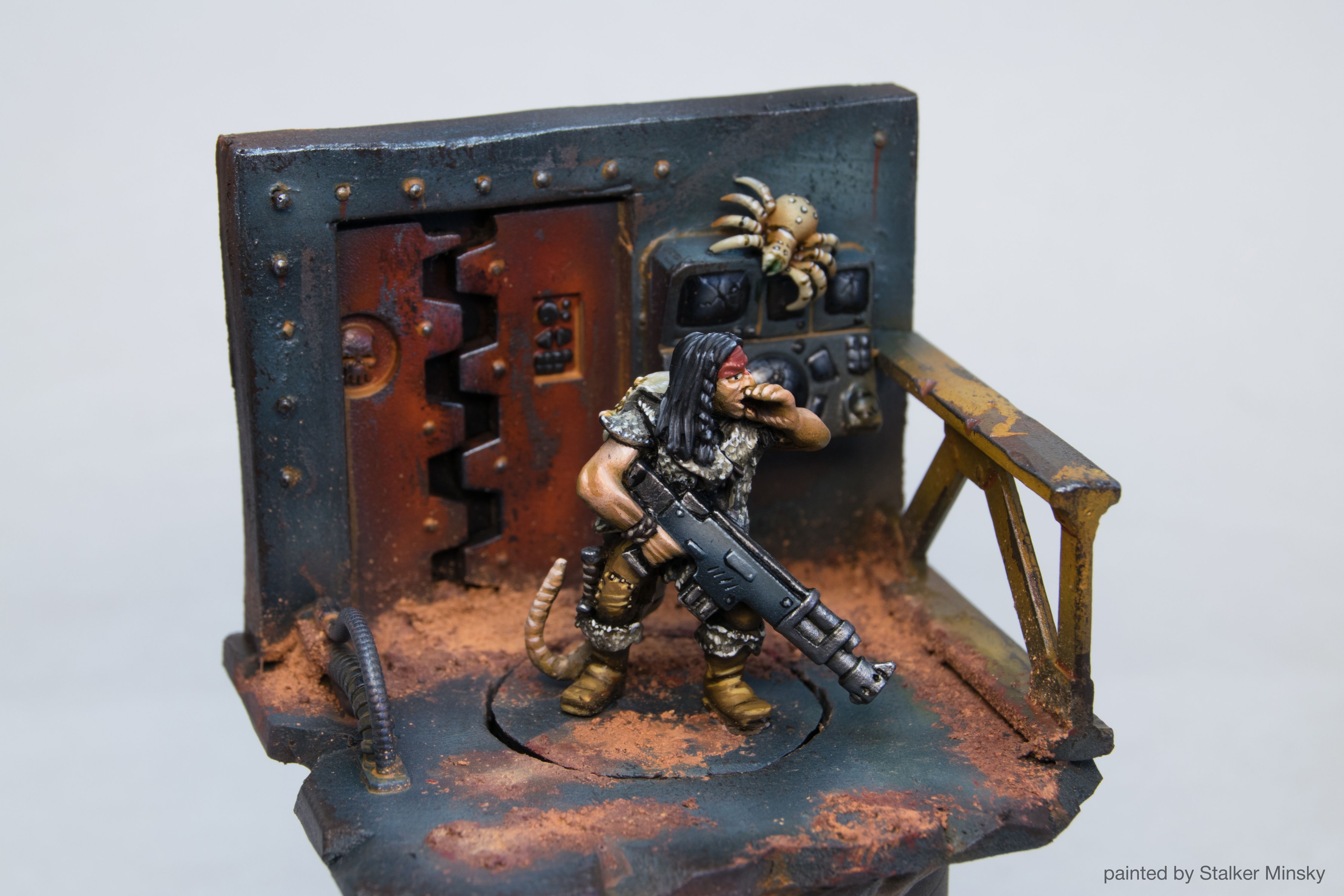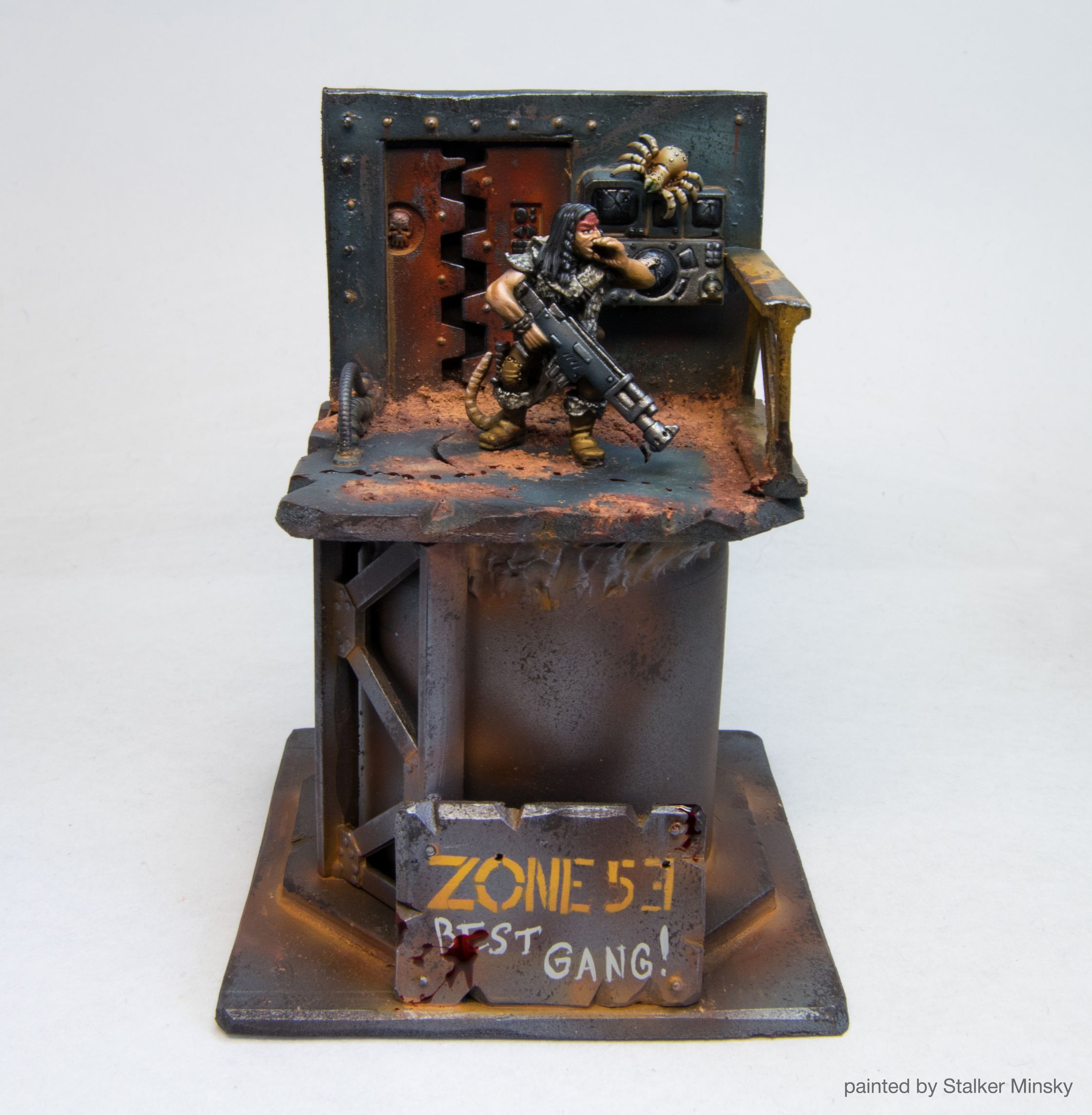 A small diorama, made as a prize for "Best Gang" category for our local Necromunda campaing "Zone 53".