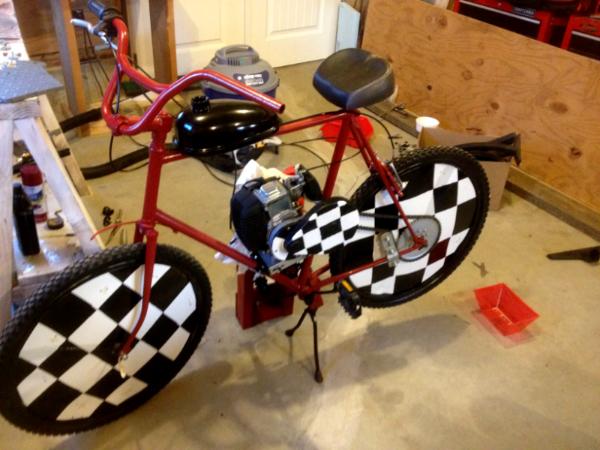 I also didn't like the gas tank that came with the motor kit. It was a 2.5 liter peanut style tank. I was going to cover it with pva foam But I found a one gallon dirt bike gas take on Ebay