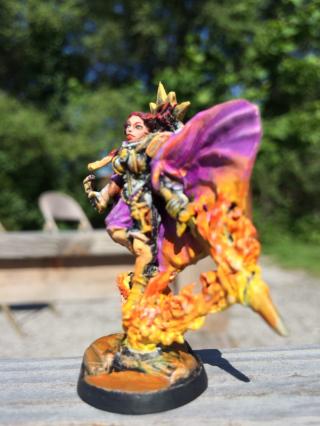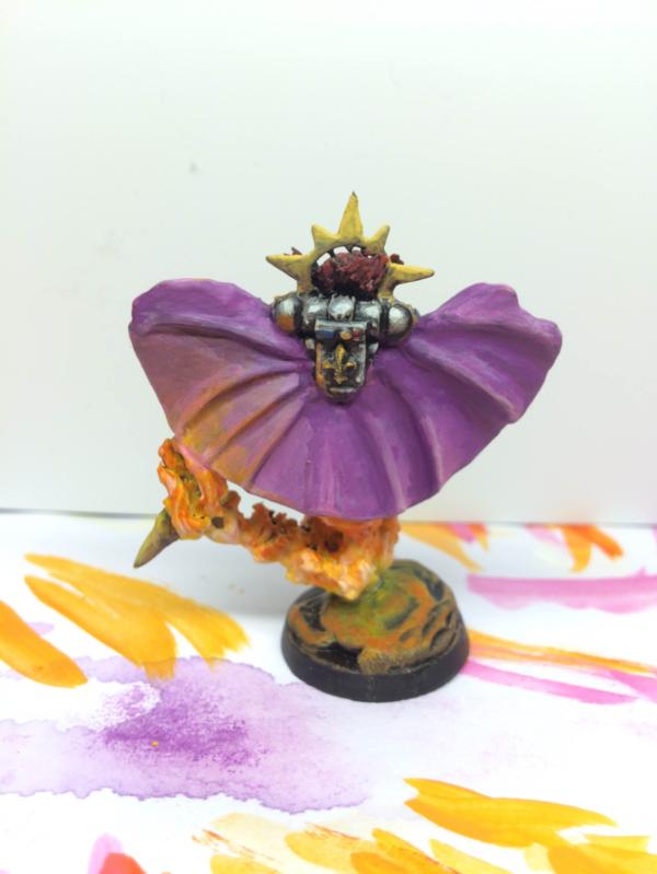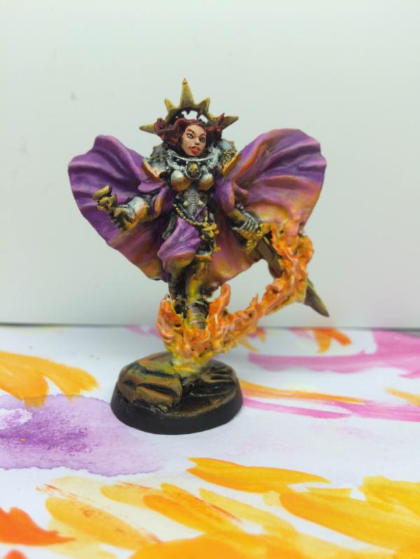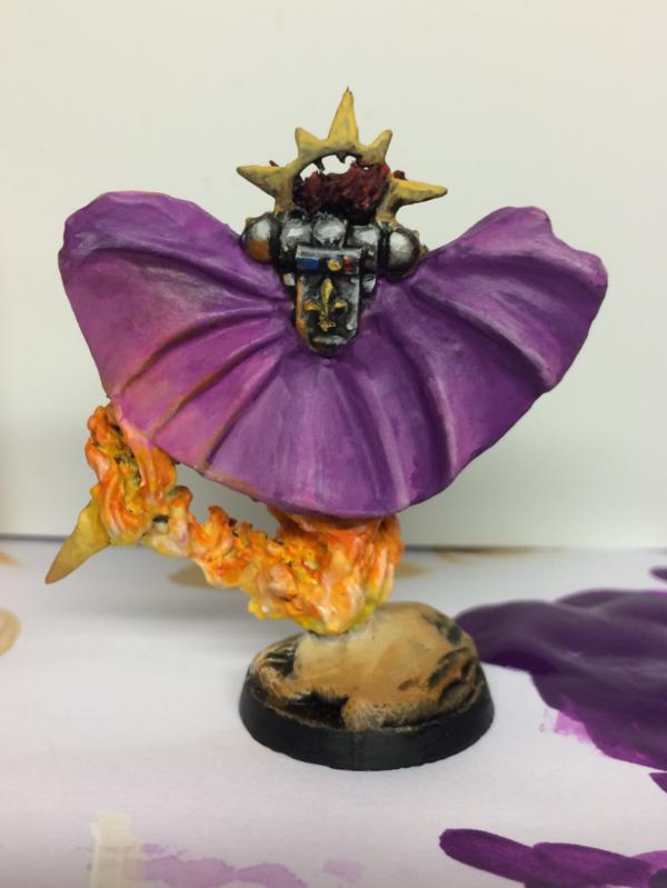 I am trying to improve a St Celestine conversion I did some time ago. The cape and flames were not that good. I have blended the cape and redone the fire. Both look good, but it was missing something. I decided I had to try some OSL on it.