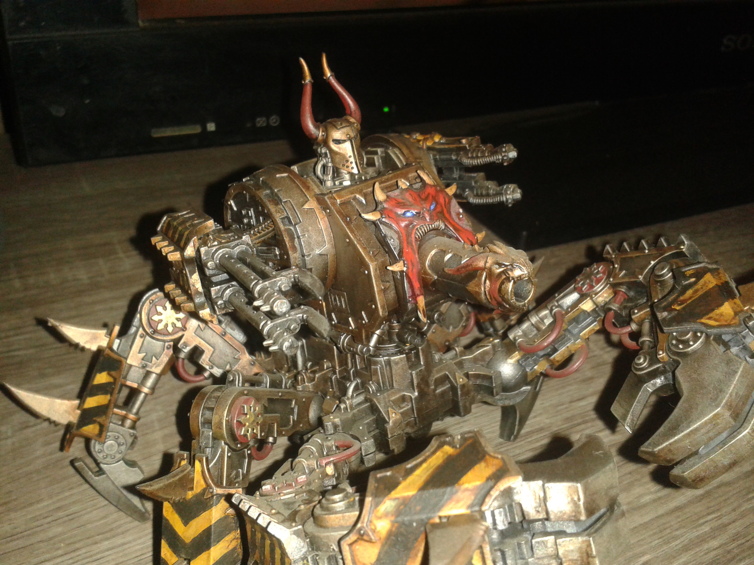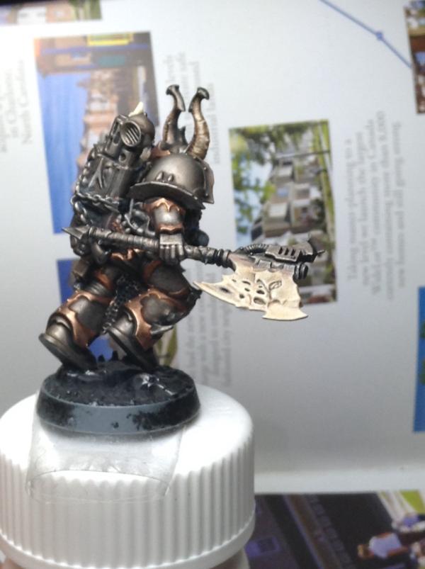 Looking good. Though he really does need hazard stripes. They're not that hard to do, and make any model scream iron warriors. FERRUM IN FERREA SINE.