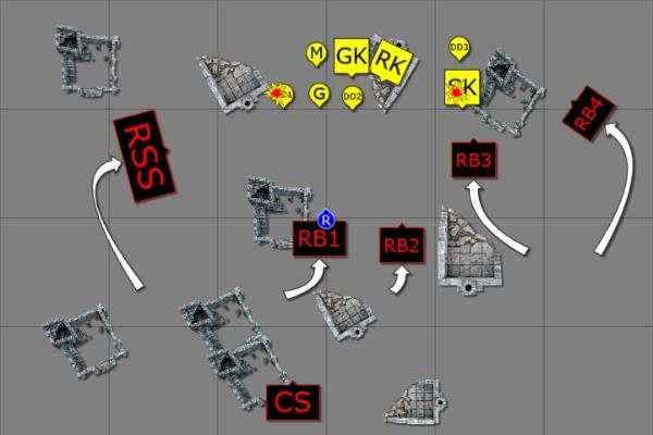 In the centre, the Gorkanaut attempted to charge the bikers. With a 7" charge required, Sebastian rolled