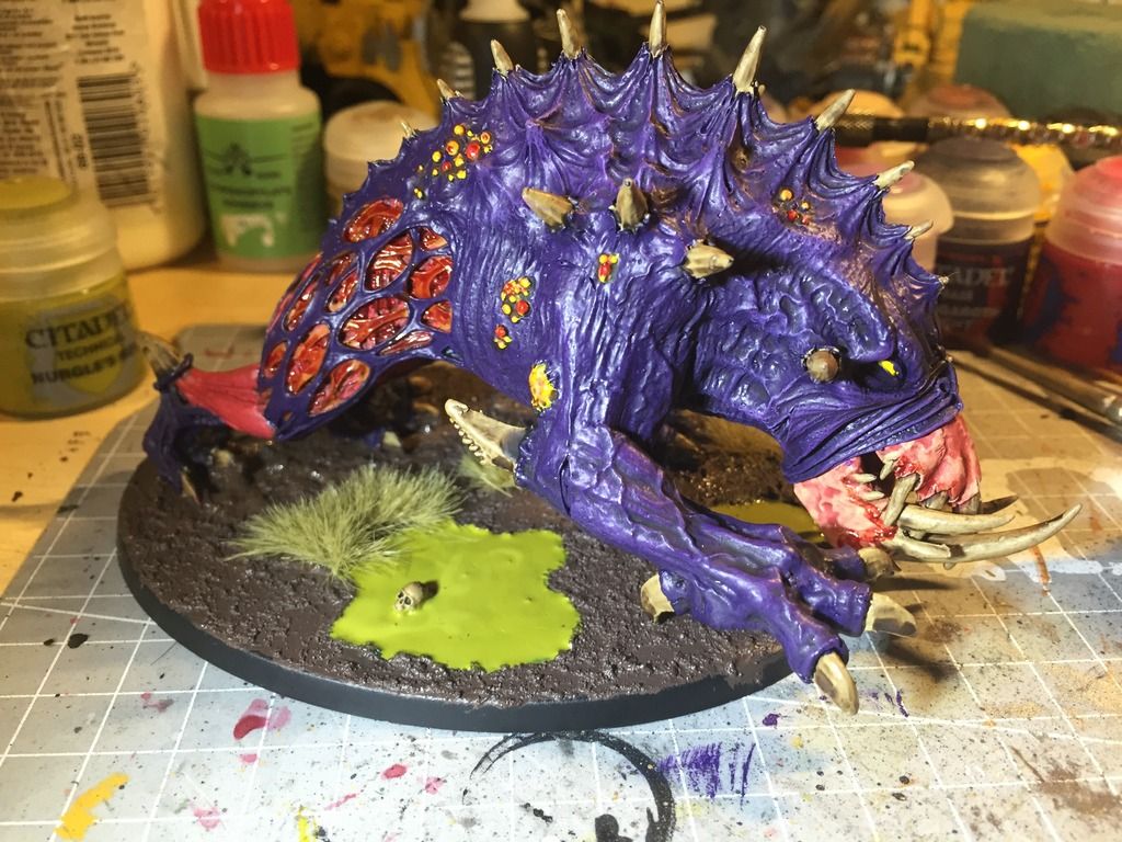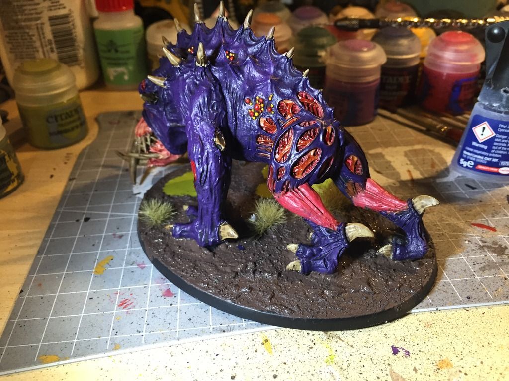 I did wash the skin with druchii violet and then lightly brushed with genestealer purple. Perhaps some nuln oil wouldn't go amiss.