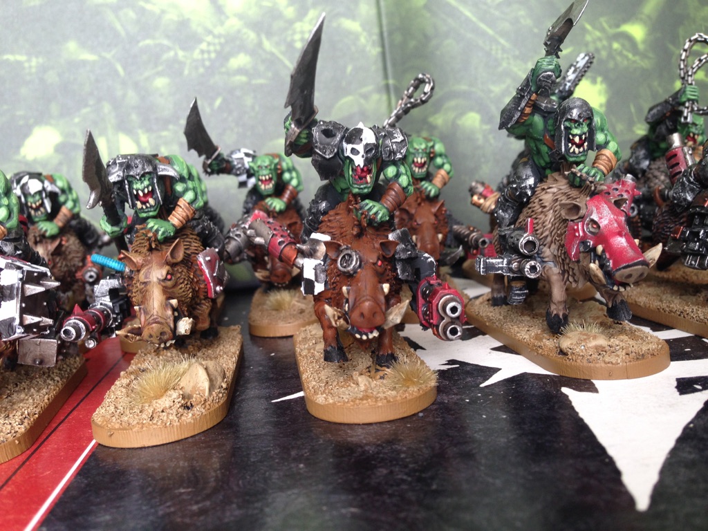 Those look fantastic. I really love the warboss. I built a cyboar gang awhile back with a similar idea. But I started with the old 40k snakebites.