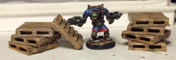 Here's the aforementioned shipping pallets (with a Mantic Deadzone Marauder for scale)