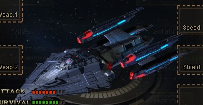 In order, attachments are Heron (light frigate) Zephyr (Medium Cruiser) Atlas (Defense Battleship) and Goliath (Fast Battleship) , The last two are about twice the size of the Prometheus. I'm at the max level in the game right now, we keep asking for the cap to be raised, my fleet is a bunch of Stellar class ships (looks like sovereigns, but more curvier.)