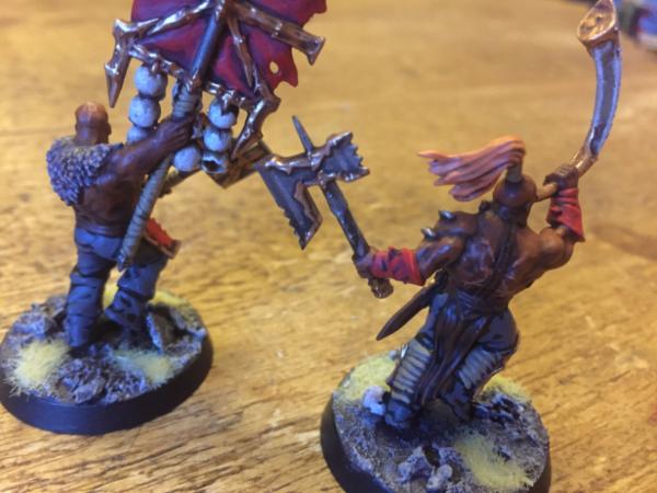So I finally got around to doing some more painting on these blighters. I'm going to let the models do most of the talking, this update, though I will note that I totally ignored suggestions of improving the skin colour.  In short, I wanted to have these guys done fast, not necessarily to use the best techniques; but there is nothing stopping me from returning and adding more highlights to the skin, if I want to do so at a later date.