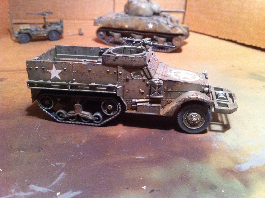 Just got a new airbrush and compressor to replace ones I had not used in many years and had donated to a teacher I know who ran a wargame club at the middle school he taught at. I had not painted WW2 stuff bigger than 15mm in darned near 15 years. I recently started looking at some 28mm WW2 stuff for use in Bolt Action and/or Chain Of Command. I got some US and German forces and over the last couple of weeks have started to build and paint the US vehicles I have.