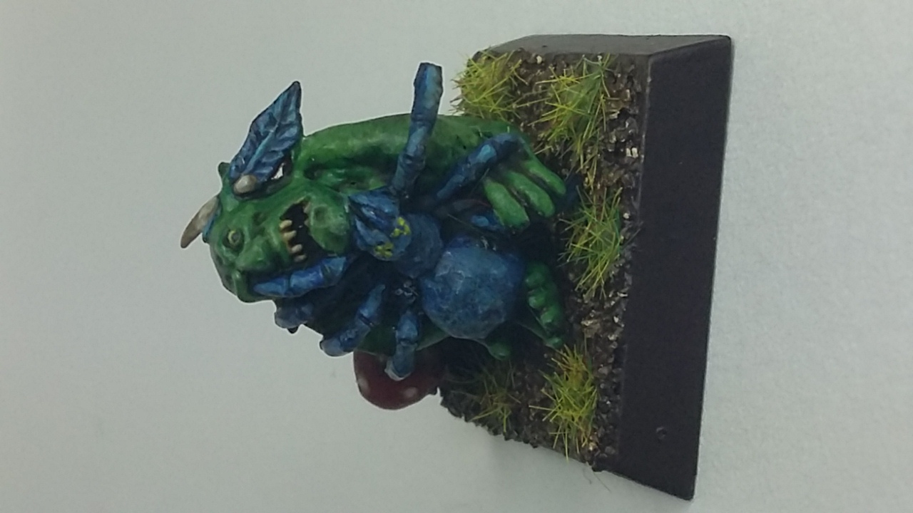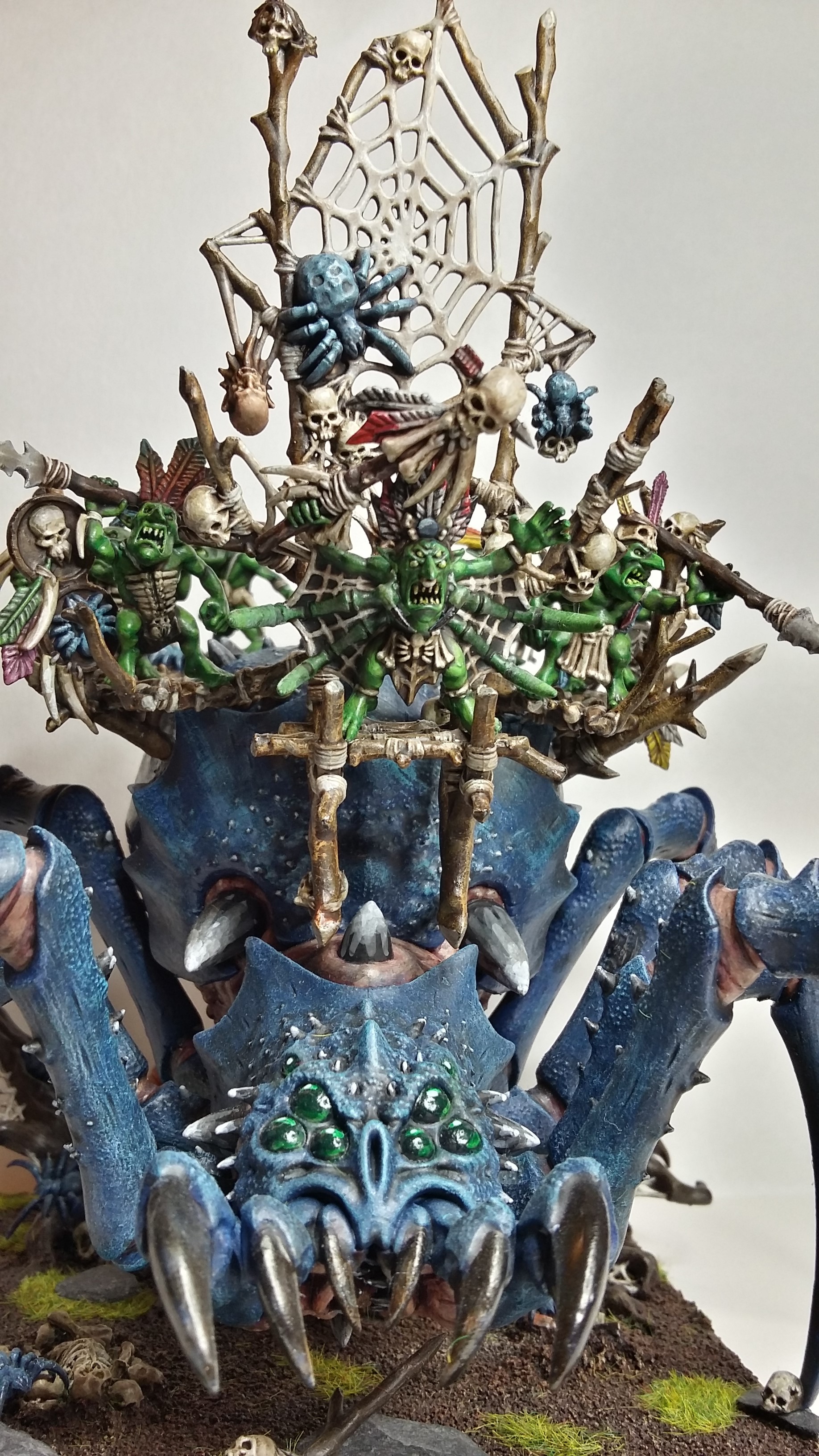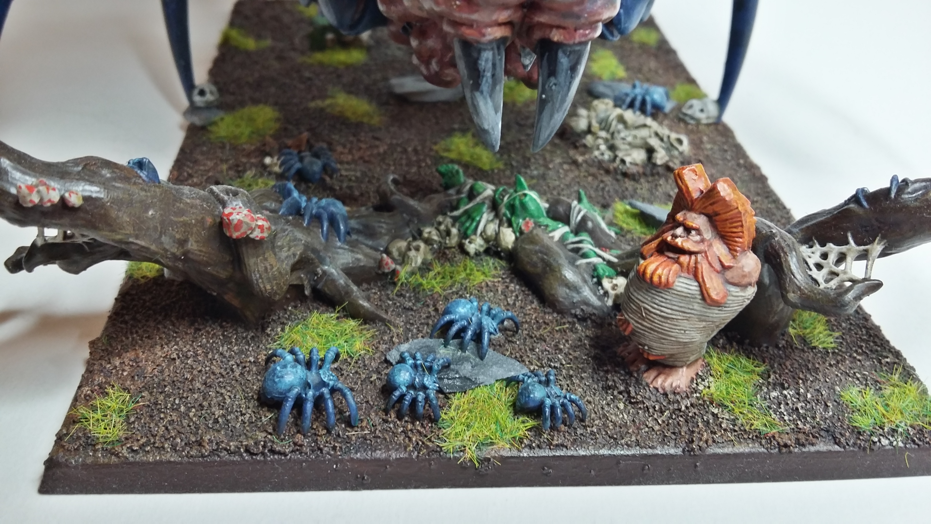 The arachnarok spider left a spare head which has been lying around... until now! I have sculpted it a body and painted it. The result is below.