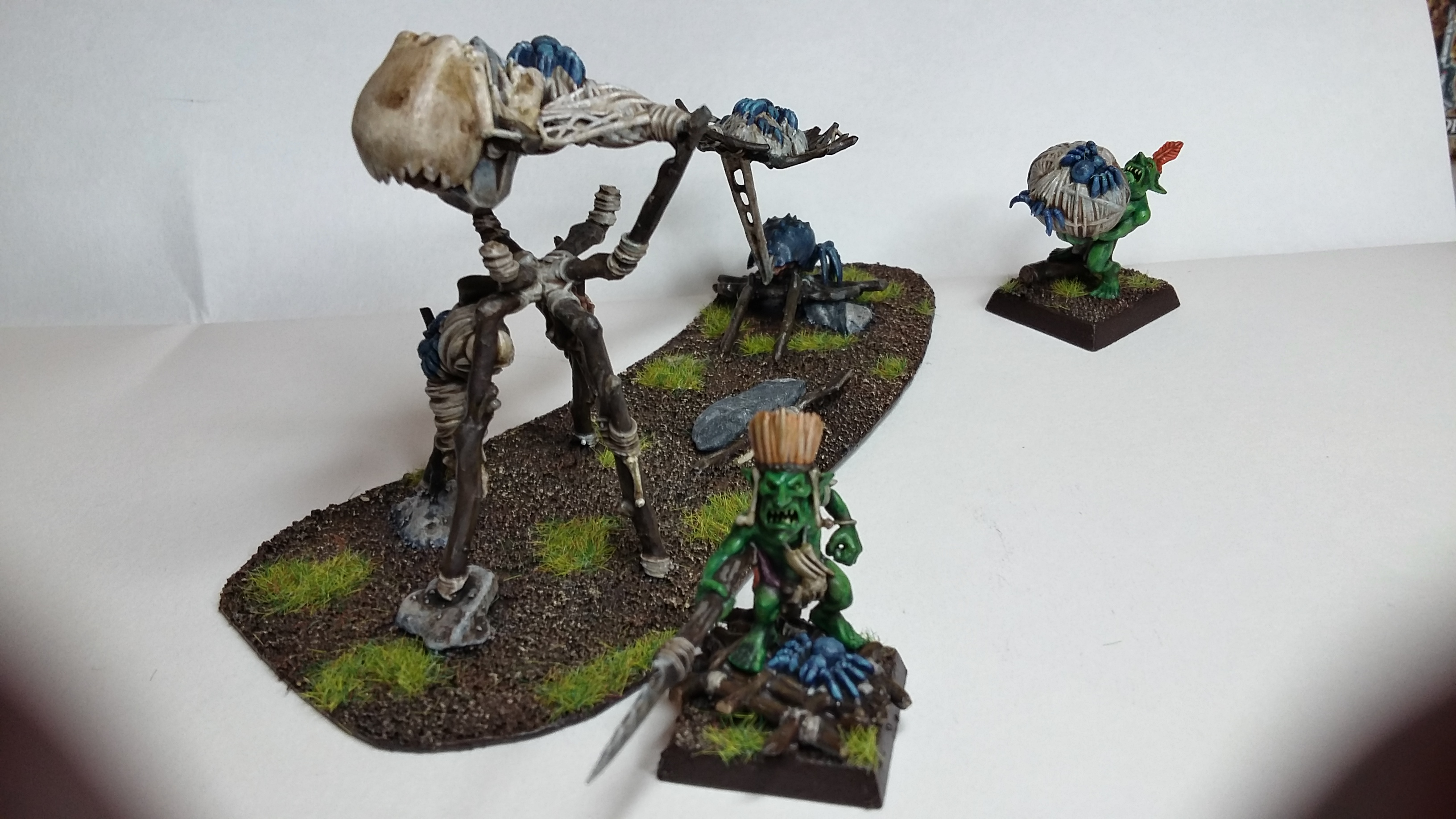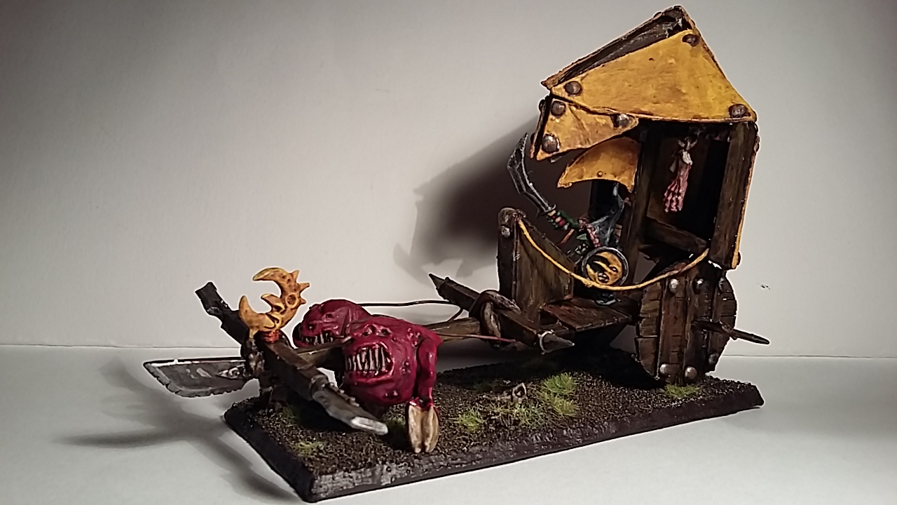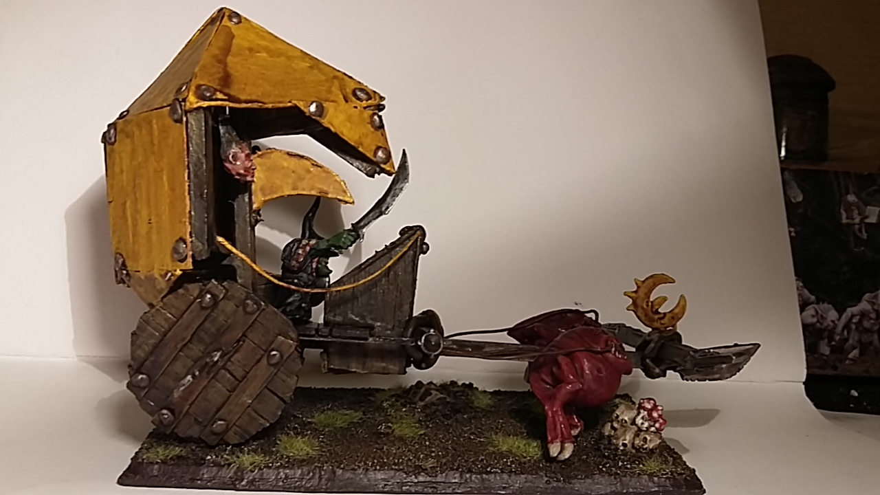 Here is my skratch built night goblin chariot. It is based on a bad moon design.